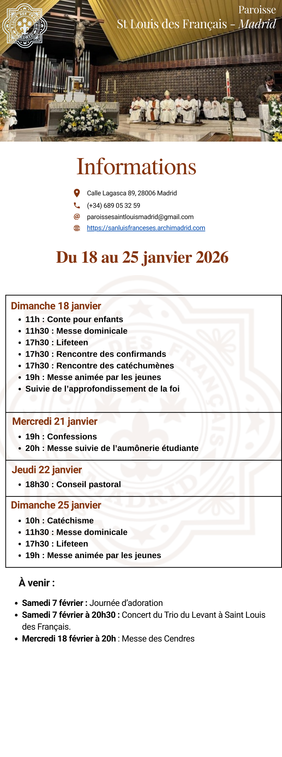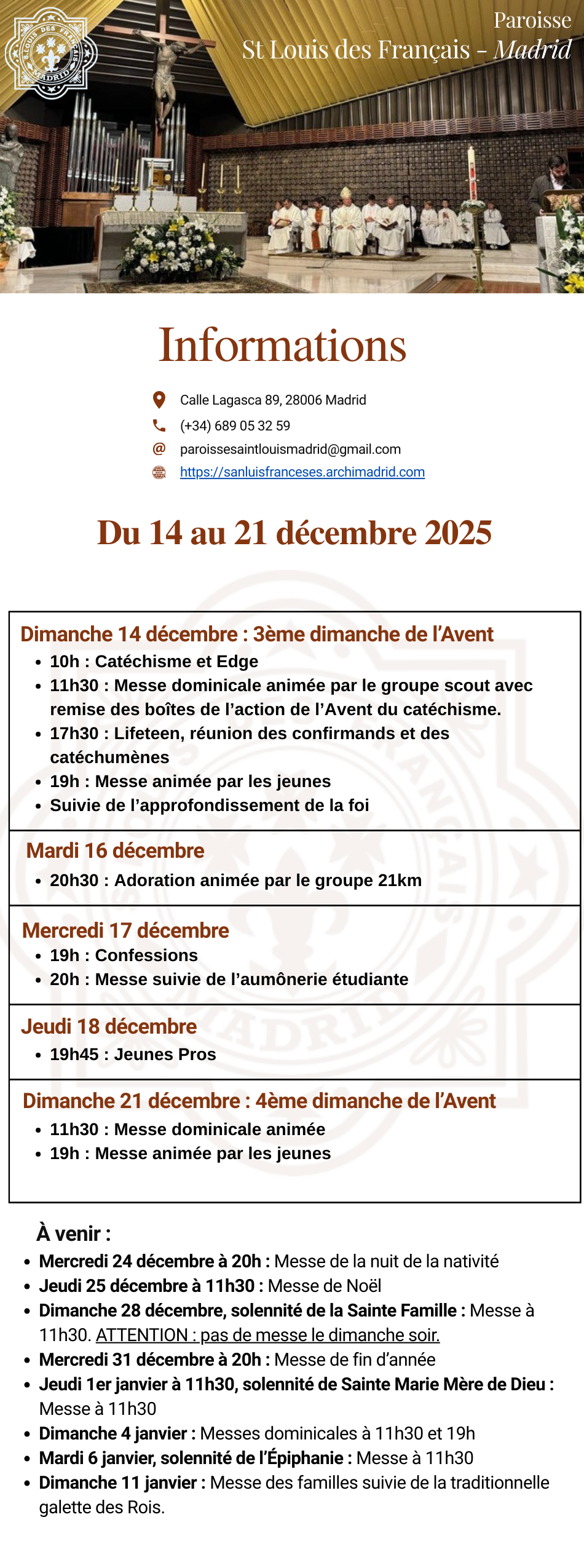 Feuilles d´annonces Semaine du 14 décembre ICI Temps de Noël ICI Semaine du 4 janvier 2026 ICI Semaine du 11 janvier 2026 ICI Semaine du 18 janvier 2026 ICI